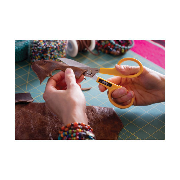 OLFA SCS-4 Right Hand Precision Smooth Edge Scissor, 2 in L of Cut, 5-1/4 in OAL, Pointed Tip, Stainless Steel Blade, ABS Handle