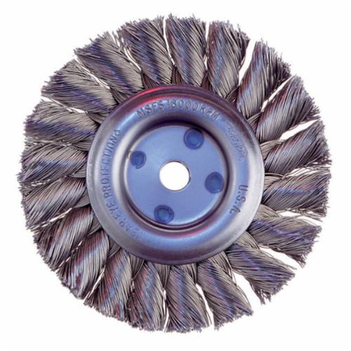 - Arbor Hole Size:3/8 inAttachment Type:Unthreaded ArborBrush Diameter:3 inFace Width:3/8 inFilament/Wire Diameter:0.014 inFilament/Wire Type:Standard/Twist KnotFill Material:Stainless SteelMaximum Speed:25000 rpmTrim Length:11/16 inType:Heavy Duty