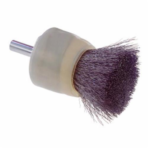 Osborn End Brush, Scuf-Gard Coated Solid Face, 1 in Brush Dia, 1/4 in Shank Dia, Crimped Filament/Wire, 0.005 in Filament/Wire, Stainless Steel Fill, 1 in Trim Length, 20000 rpm Maximum, 2-3/4 in Overall Length