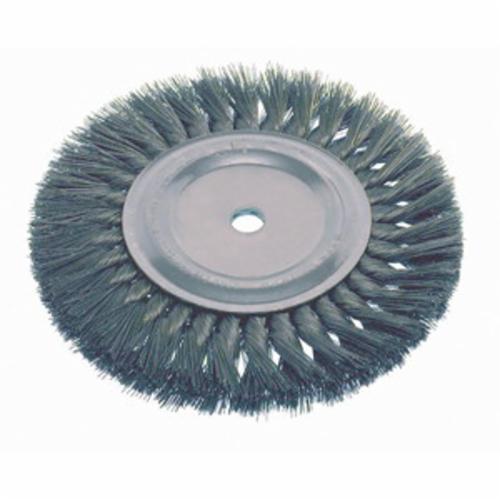 Osborn Wheel Brush, 10 in Brush Dia, 5/8 in Face Width, Arbor Hole Size 1-1/4 in, Standard/Twist Knot Filament/Wire, 0.016 in Filament/Wire, Carbon Steel Fill, 2-1/4 in Trim Length, 4500 rpm Maximum, Unthreaded Arbor Attachment