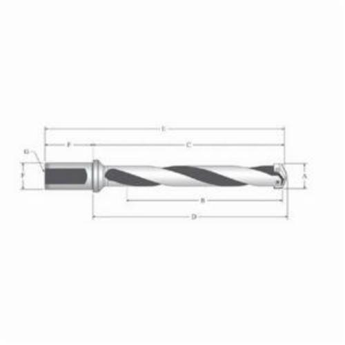Allied Machine & Engineering 23010H-100F 1 Series Helical Flute Intermediate Length Replaceable Spade Drill Insert Holder With Through Coolant Channel, 1 in Dia x 2-9/32 in L Straight Shank, 45/64 to 15/16 in Blade Range, 8-3/8 in OAL