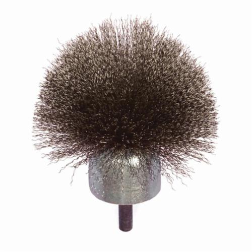 PFERD End Brush, Circular Stem Mount, 1-1/2 in Diameter Brush, 1/4 in Shank Diameter, Crimped Filament/Wire Type, 0.02 in Filament/Wire Diameter, Carbon Steel Fill, 14000 rpm Maximum