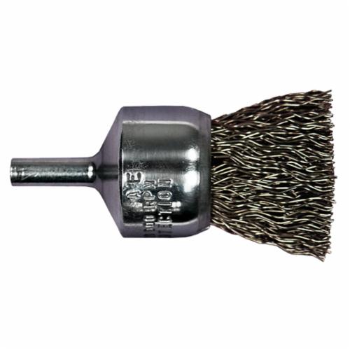 PFERD End Brush, General Purpose Stem Mount, 1/2 in Diameter Brush, 1/4 in Shank Diameter, Crimped Filament/Wire Type, 0.01 in Filament/Wire Diameter, Carbon Steel Fill, 1 in Trim Length, 25000 rpm Maximum