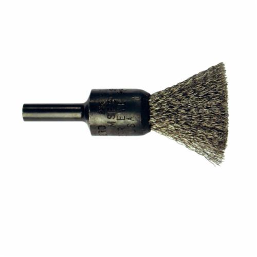 PFERD End Brush, General Purpose Stem Mount, 1/2 in Diameter Brush, 1/4 in Shank Diameter, Crimped Filament/Wire Type, 0.006 in Filament/Wire Diameter, Stainless Steel Fill, 1 in Trim Length, 25000 rpm Maximum