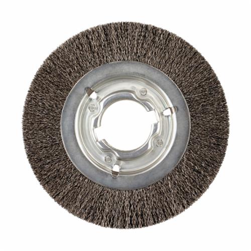 PFERD Wheel Brush, Wide Face, 12 in Brush Dia, 2-3/8 in Face Width, 2 in Arbor Hole Size, Crimped Filament/Wire Type, 0.012 in Filament/Wire Diameter, Carbon Steel Fill, 2-7/8 in Trim Length, 3000 rpm Maximum, Unthreaded Arbor Attachment
