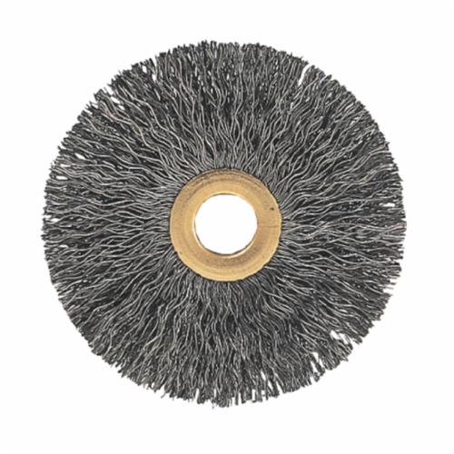 PFERD Wheel Brush, Small Diameter Tube Center, 2 in Brush Dia, 3/8 in Face Width, 1/2 to 3/8 in Arbor Hole Size, Crimped Filament/Wire Type, 0.012 in Filament/Wire Diameter, Carbon Steel Fill, 1/2 in Trim Length, 20000 rpm Maximum, Unthreaded Arbor Attachment