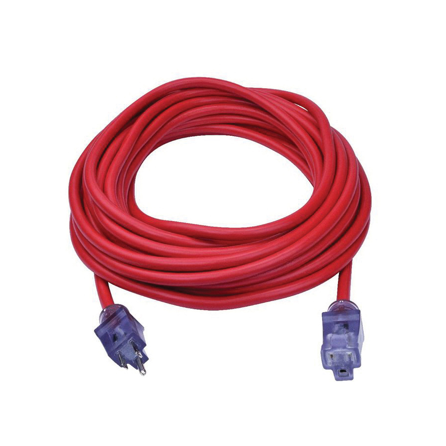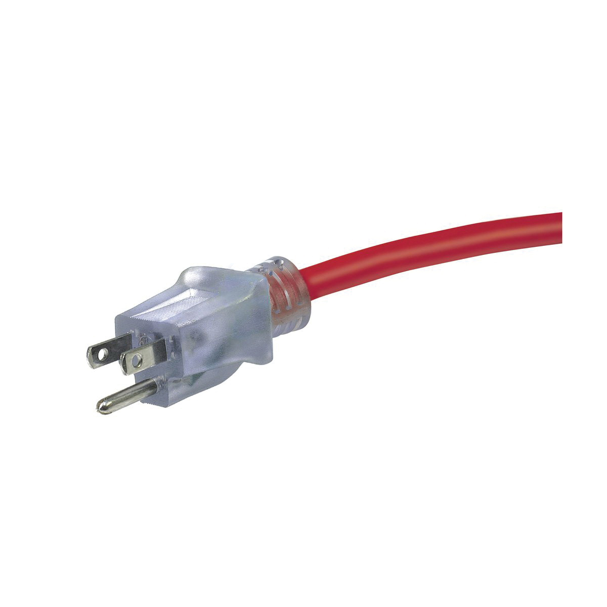 - Color:Neon RedConductor Size:12 AWGCord Length:50 ftCord Size:12/3 AWGElectrical Ratings:125 V 15 A 1875 WInsulation Material:PVC ThermoplasticMaterial:VinylNumber of Conductors:3Number of Outlets:1Plug Type:GroundedReceptacle Type:LightedResistance:Flame Retardant, Water and Abrasion, Flame Retardant/Water and AbrasionTemperature Rating:-58 to 140 deg FType:High Visibility Type SJTW