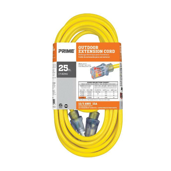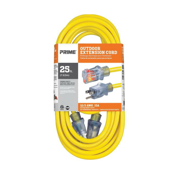 PRIME Jobsite EC511825 SJTW Ultra Flexible Extension Cord With Primelight Power Indicator Light, 125 V, 15 A, 1875 W, 25 ft L Cord, 3 Conductors
