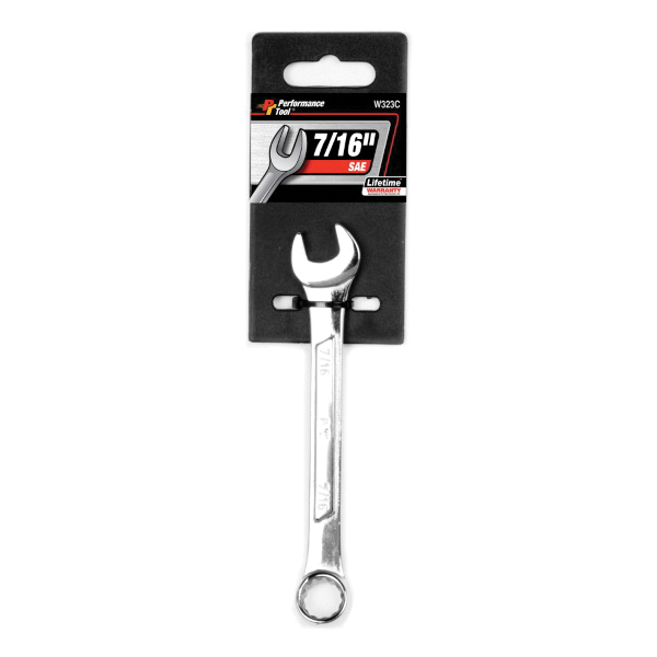 Performance Tool W323C Combination Wrench, 7/16 in, Alloy Steel, Polished Chrome
