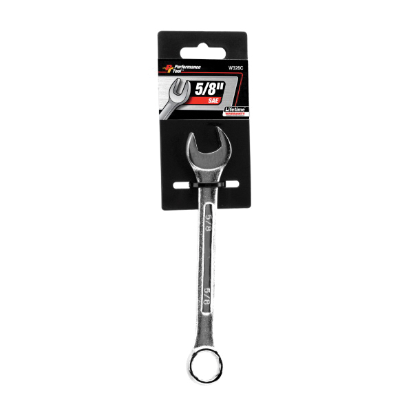 Performance Tool W326C Combination Wrench, 5/8 in, Alloy Steel, Polished Chrome
