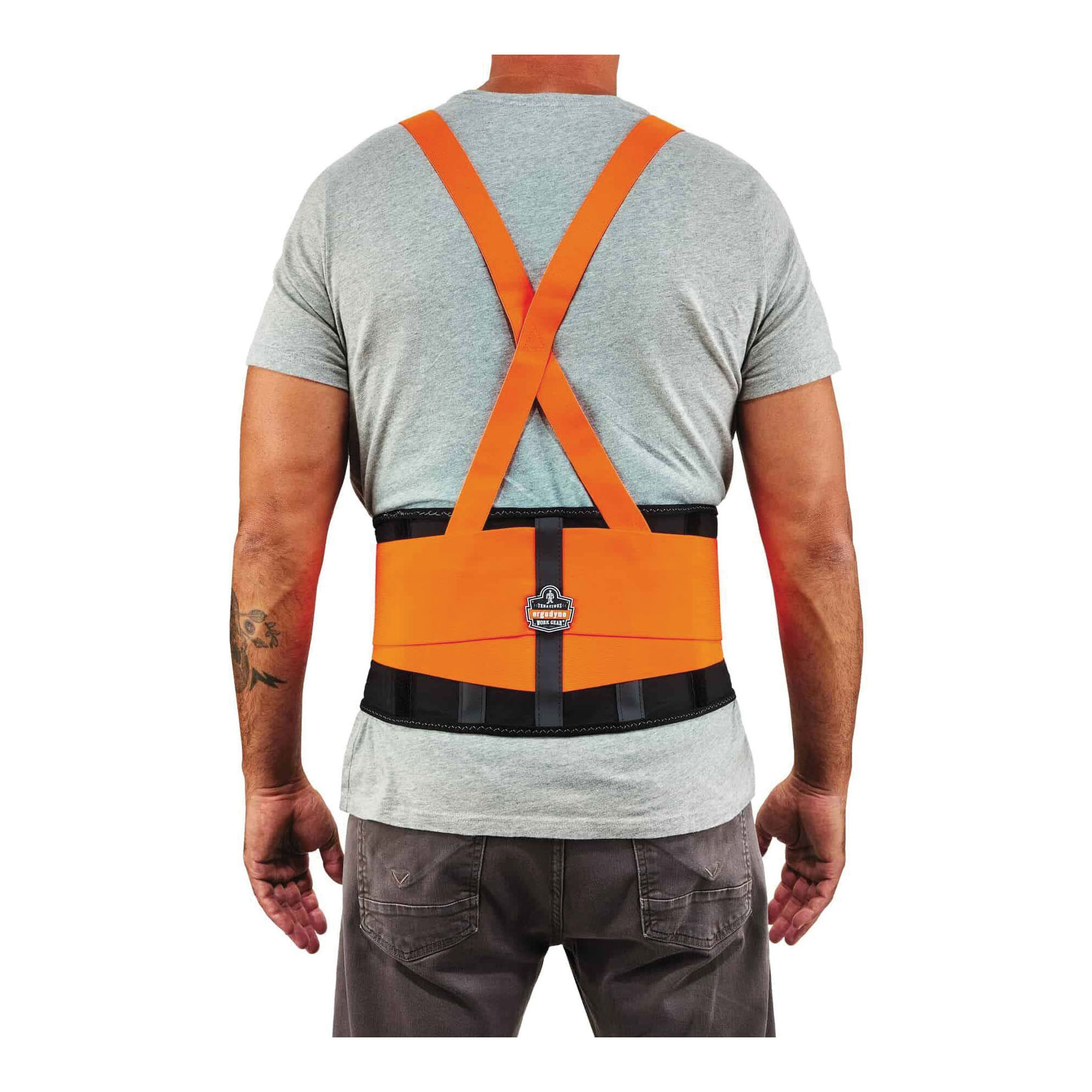 ProFlex 11887 100HV Economy High Visibility Back Support Brace With Suspenders, 3XL, 46 to 52 in Fits Waist, 8 in W, Rubber Webbing, Hi-Viz Orange, Hook and Loop Closure
