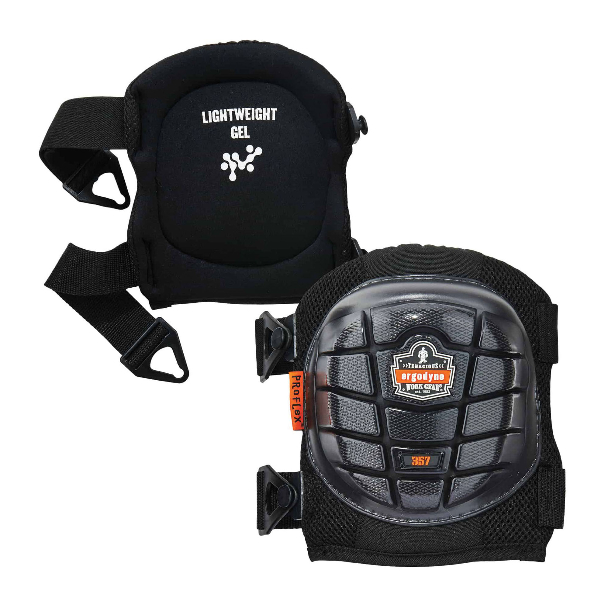 ProFlex 18457 357 Lightweight Short Cap Knee Pads, Rubber Cap, Gel-Polymer Pad, Clip/Hook and Loop Closure, Elastic Strap, 2 Straps, Black