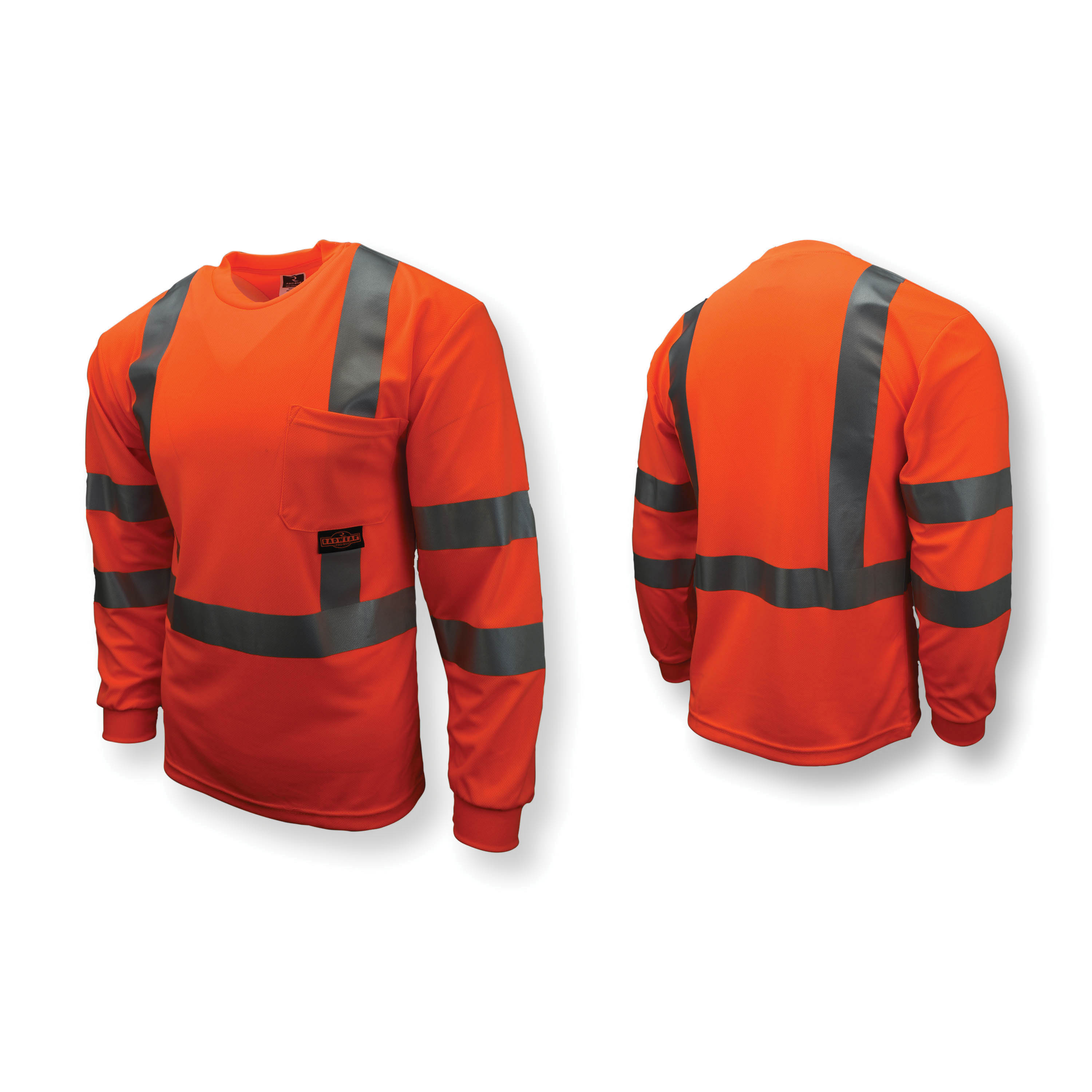 RADWEAR ST21-3POS-L Long Sleeve Safety T-Shirt, L, Hi-Viz Orange, Birds Eye Polyester Mesh