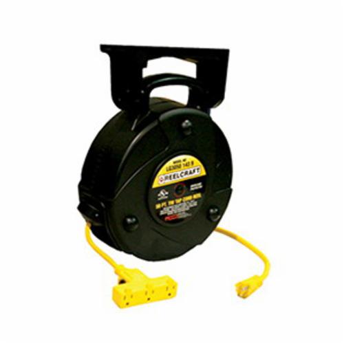 Reelcraft LG3040 123 9 Retractable Power Cord Reel With SJTW Cord, 125 V AC, 15 A, 40 ft L Cord, 12 AWG Conductor, 3 Outlets