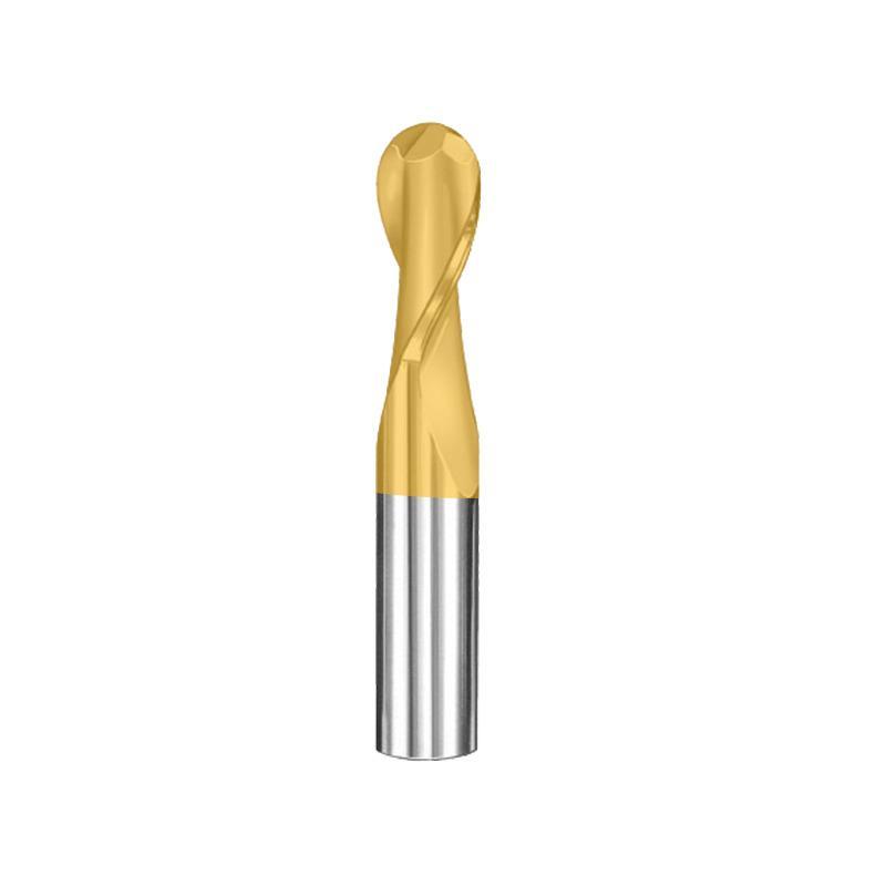 SGS® End Mill, Ball Nose End Metric, Series: 03B, 1.5 mm Diameter Cutter, 38.1 mm Overall Length, 4.5 mm Length of Cut, 2 Flutes, Spiral Flute, 3 mm Shank Diameter, Right Hand Cutting Direction, 30 deg Helix Angle, Straight Shank, 1.323 in Shank Length, Micrograin Solid Carbide, TN Coated Finish