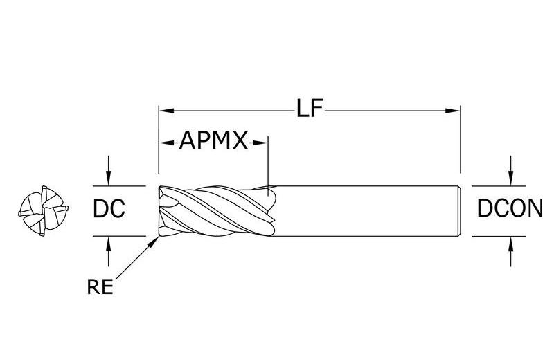SGS 36380 Z-Carb-AP Z1PCR Center Cutting High Performance Regular Length Single End Variable Rake End Mill, 1/2 in Dia Cutter, 0.06 in Corner Radius, 1 in Length of Cut, 4 Flutes, 1/2 in Dia Shank, 3 in OAL, TX Coated