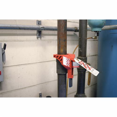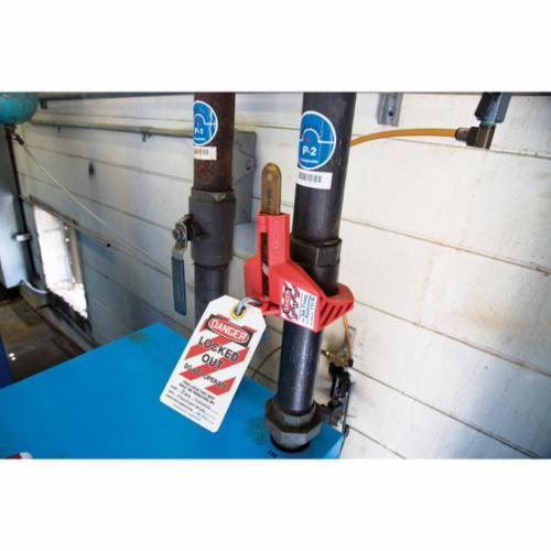 - Color:RedFits Maximum Handle Size:Up to 1-1/2 in W x 1/2 in THKFits Maximum Pipe Size:2 inFits Minimum Pipe Size:1-1/2 inLegend:Danger Locked OutMaterial:PlasticMaximum Number of Padlocks:1Maximum Temperature:250 deg FMinimum Temperature:0 deg FPadlock Shackle Maximum Diameter:5/16 in