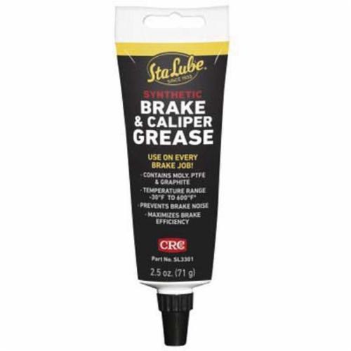 Sta-Lube® Brake and Caliper Grease, Non-Flammable Synthetic, 2.5 oz, Tube, 2.5 oz Net Weight, Semi-Solid Grease, Black, Faint/Mild, 842 deg F Boiling, 450 deg F Flash, 0.9 Specific Gravity, 14 g/L VOC, Composition: Synthetic Oil Blend, Amorphous Silica, Graphite, Molybdenum Disulfide, Polytetrafluoroethylene