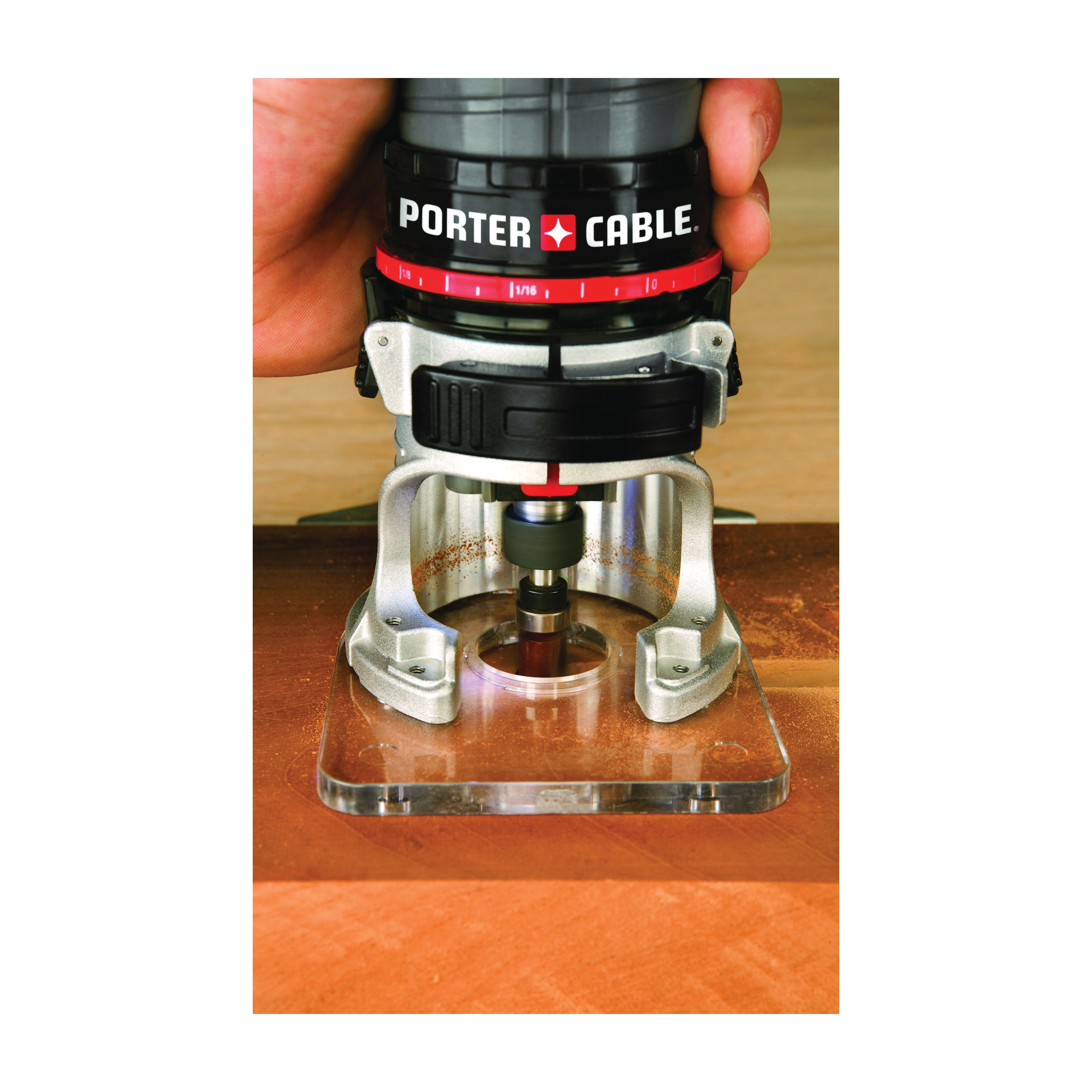 - An attached depth ring enables quick and accurate bit height adjustments