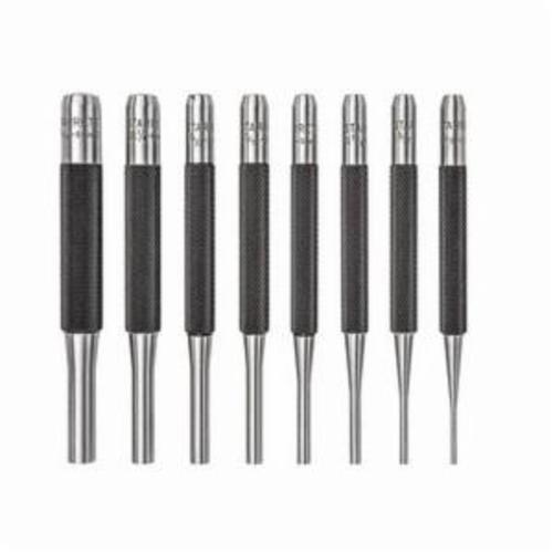 Starrett® Drive Pin Punch Set, 1/16 to 5/16 in Punch, 4 in Overall Length, 8 Piece, Long Drive Style, Round Shank, Yes Non-Sparking, Steel