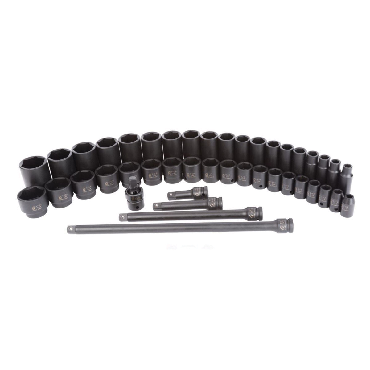 Sunex 2568 Master Impact Socket Set, ASME Specified, Imperial, 6 Points, 1/2 in Drive, 43 Pieces, Included Socket Size: 3/8 to 1-1/2 in, Blow Molded Case Container