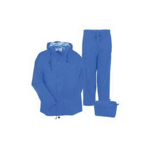 Tingley Storm-Champ® Rainsuit, 2-Piece, Series: S66211, Men's, Size L, Royal Blue, Nylon/PVC, Attached Hood Style, 52 in Chest, 46 in Waist, 30 in Inseam Length, 0.2 mm Thickness, Front Zipper Closure