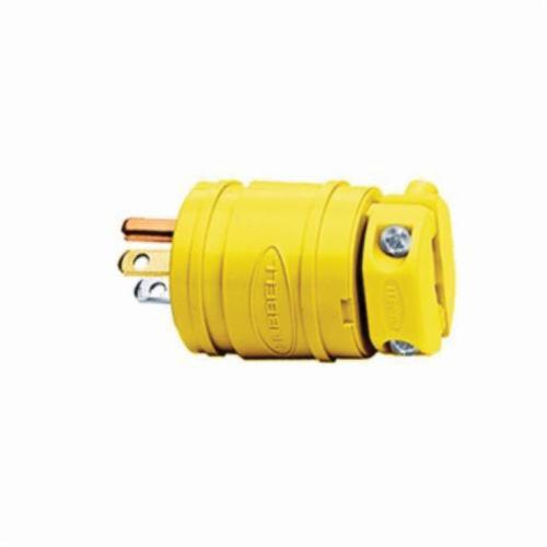 Hubbell Wiring Device-Kellems HBL1447 1-Phase Cord Mounted Grounding Watertight Straight Blade Plug, 125 V AC, 15 A, 2 Poles, 3 Wires, Yellow