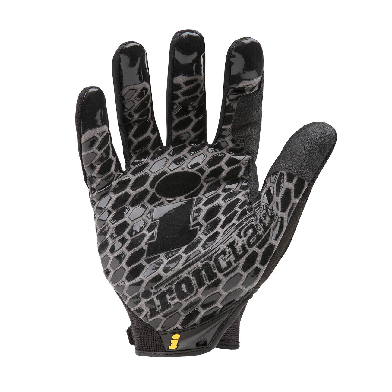ironClad® Box Handler® General Purpose Gloves, Unlined Ultimate Grip, Mechanics Glove Type, XL, Silicone Palm, Black, Full Finger/Wing Thumb, Hybrid Cuff, Hook and Loop Closure, Resists: Abrasion