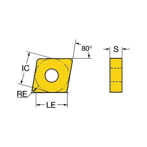 - ANSI Code:CNMG 433-MF 4335Chipbreaker:MFCorner Radius:0.047 inCutting Direction:NeutralFinish:CVD-TiCN+Al2O3+TiN CoatedFor Use On:SteelHole Diameter:0.203 inIncluded Angle:80 degInscribed Circle:1/2 inInsert Size:433Insert Style:CNMGISO Code:CNMG 12 04 12-MF 4335Manufacturer's Grade:4335Material:CarbideMaterial Grade:PMaximum Depth of Cut:0.157 inRake:NegativeRelief Angle:0 degSeat Size:12Series:T-Max® PShape:RhombicThickness:0.187 in