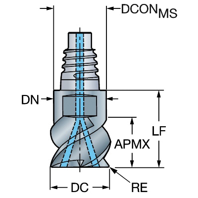 SANDVIK COROMANT 7611882 COROMILL 316 IMPERIAL MILLING HEAD WITH AXIAL THROUGH COOLANT, ANSI CODE: A316-20SM450C07515P 1730, A316..SM..C..P MILLING TIP STYLE, END MILL MILLING TIP, SOLID CARBIDE, 0.062 IN CORNER RADIUS, MANUFACTURERS GRADE: 1730