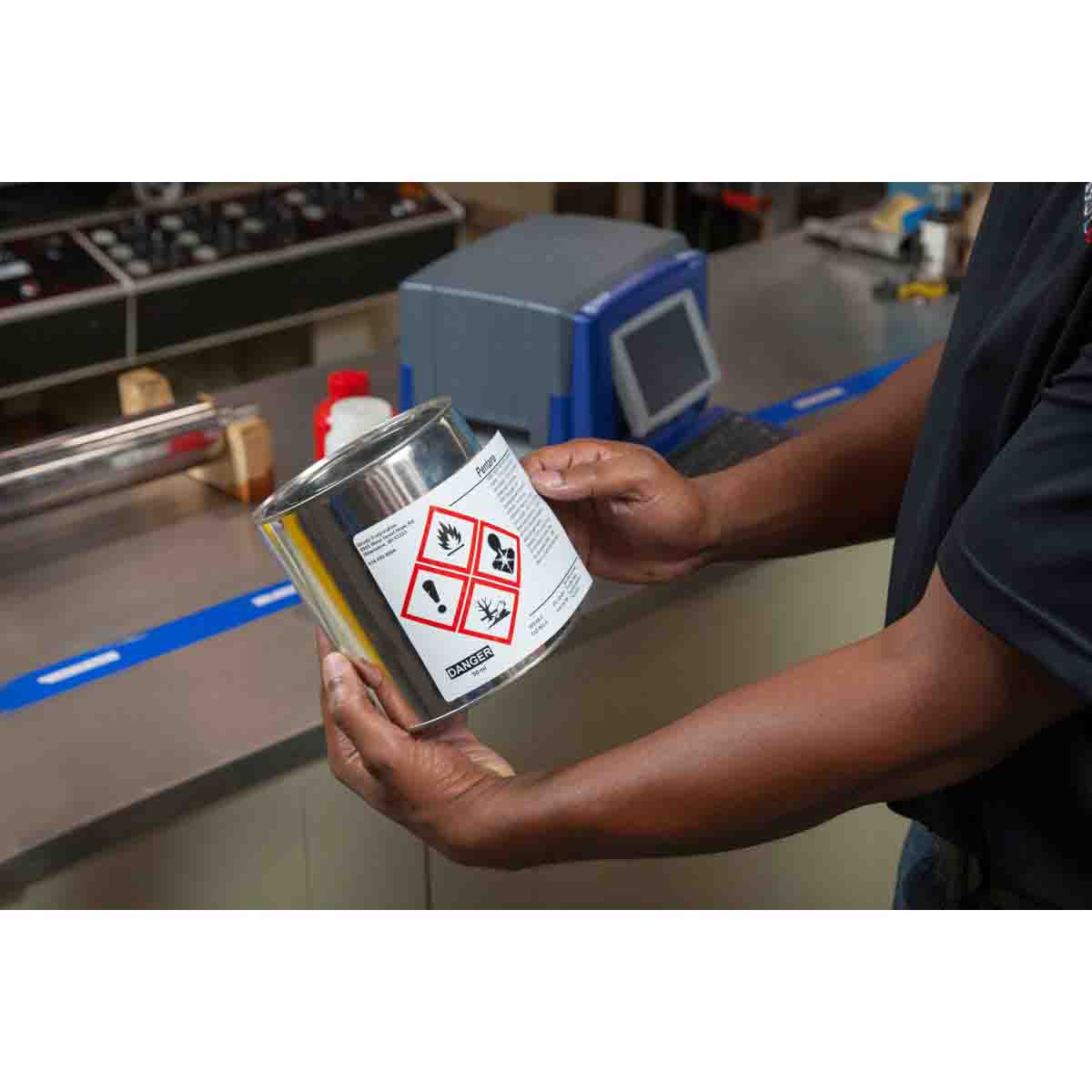 - Labels pre-printed with red GHS diamonds, which allows the printer to create 2-color GHS/CLP chemical labels in one print pass