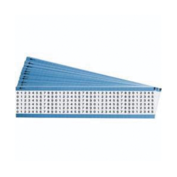 - Legend/Background Color:Black on WhiteMarker Legend:0 to 9Marker Length:1-1/2 inMarker Width:1/4 inMarkers per Card:30Material:B-702 Low Profile Vinyl Coated Polyester, B-702 Vinyl Coated PolyesterSeries:TWMType:Consecutive Number Die-Cut Pre-Printed Repeated