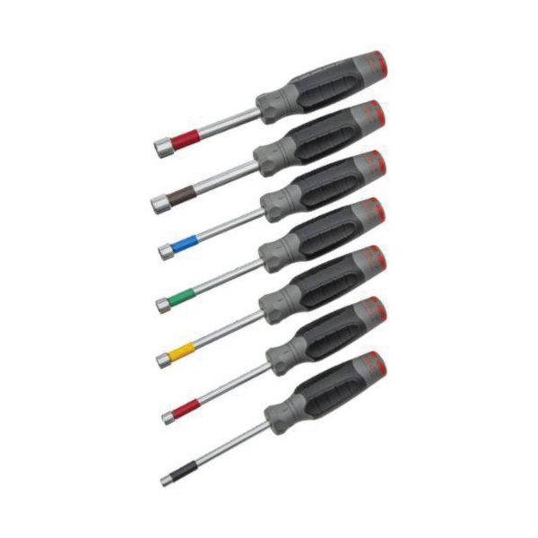 Proto DuraTek J1207SND Nut Driver Set, 3/16 to 1/2 in, 7 Pieces, 8-1/2 to 9 in OAL, Ergonomic Grip Handle, Steel Shank, ASME B107.12