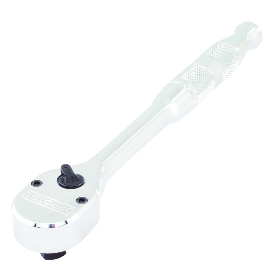 Proto J5249HTC Standard Head Ratchet, 3/8 in Drive, Pear Head, 7 in OAL, Alloy Steel, Nickel Polished Chrome, ASME B107.10M, ASME B107.110-2012, SAE AS4984A