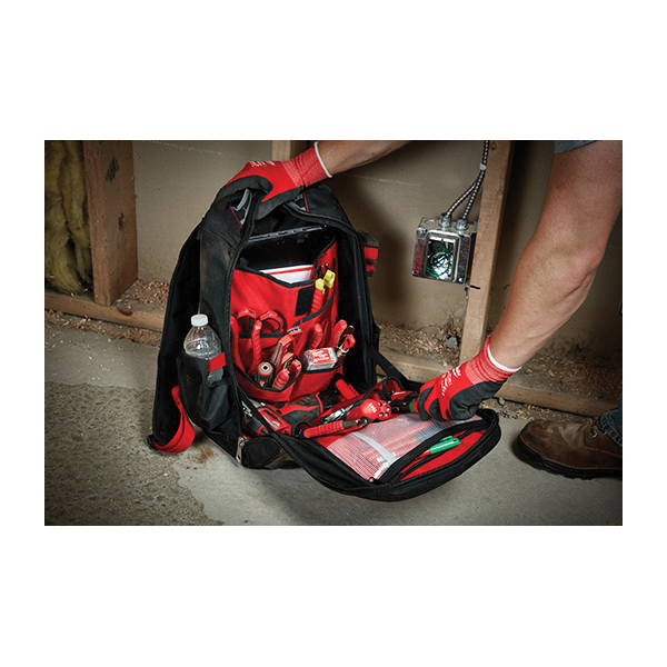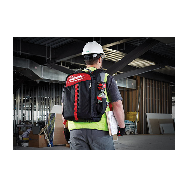 Milwaukee 48-22-8202 Low Profile Backpack, 1680D Ballistic Nylon, Black/Red