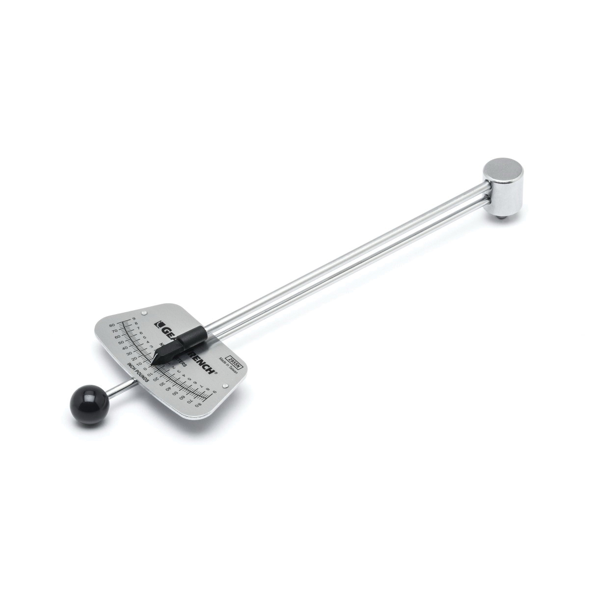 - Palm-fit handle pivots on the beam to maintain a constant distance from the drive point for precise measurement