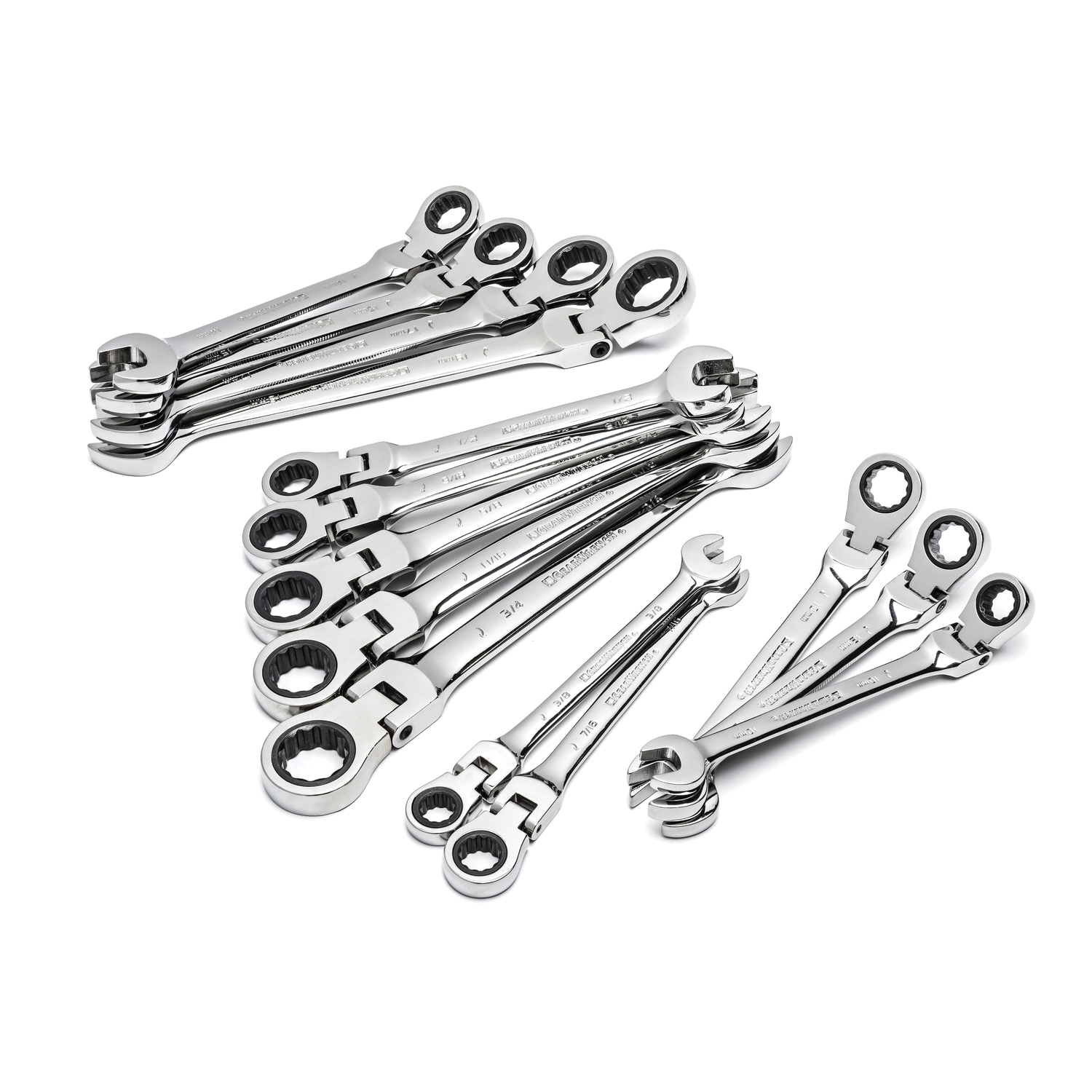 - Finish:Polished ChromeMaterial:Alloy SteelNumber of Pieces:14Size Range:3/8 to 3/4 in, 10 to 19 mmSpecifications:15 deg Offset, Open End Drive, 72-ToothSystem of Measurement:Imperial/Metric, Metric/Imperial