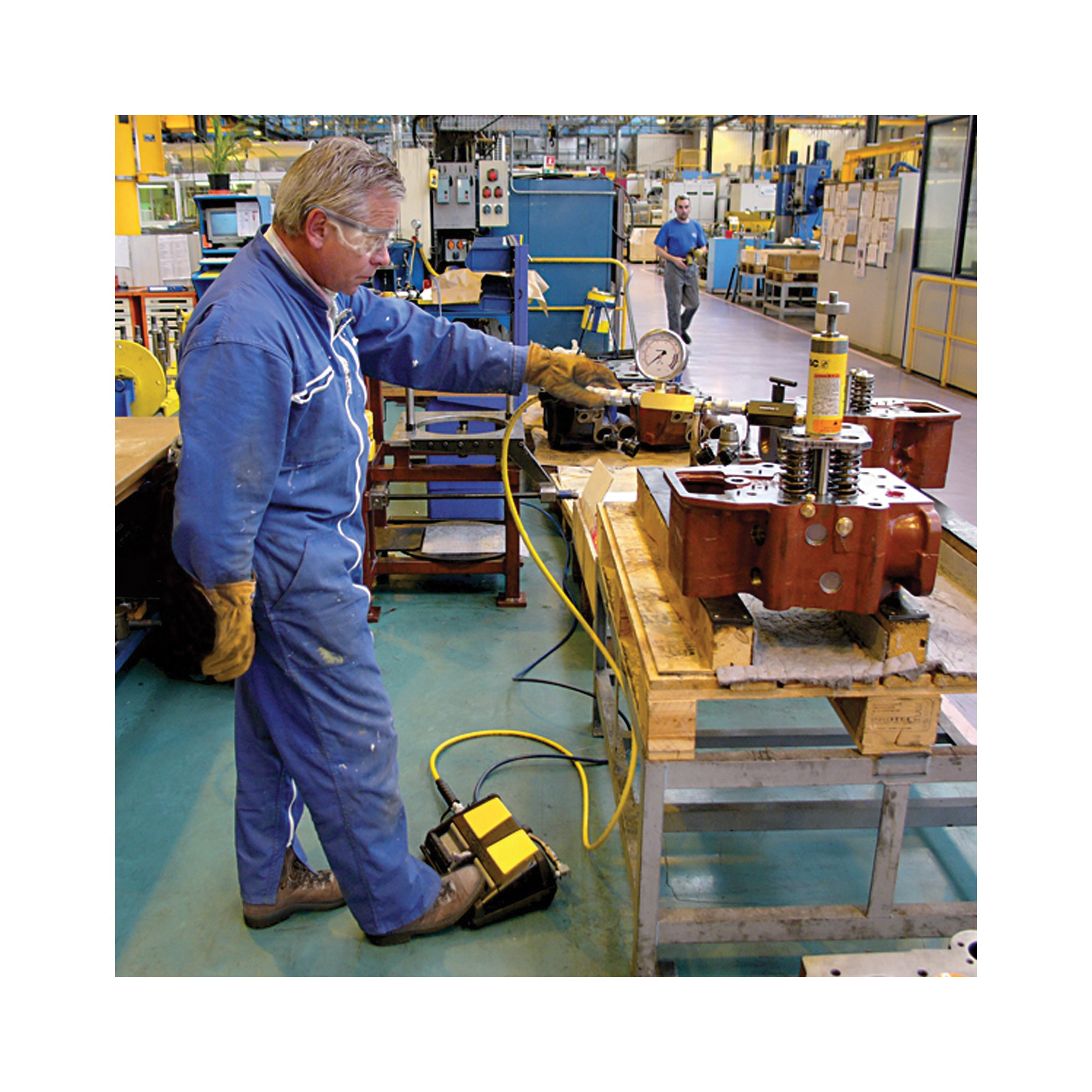 Enerpac XA11V Air Driven Hydraulic Foot Pump, Manual Actuator, 283 to 991 scfm Air Flow, 15 cu-in/min Load, 120 cu-in/min No Load Oil Displacement Rating, 3/8-18 NPTF Fluid Port, 1/4-18 NPTF Air Inlet