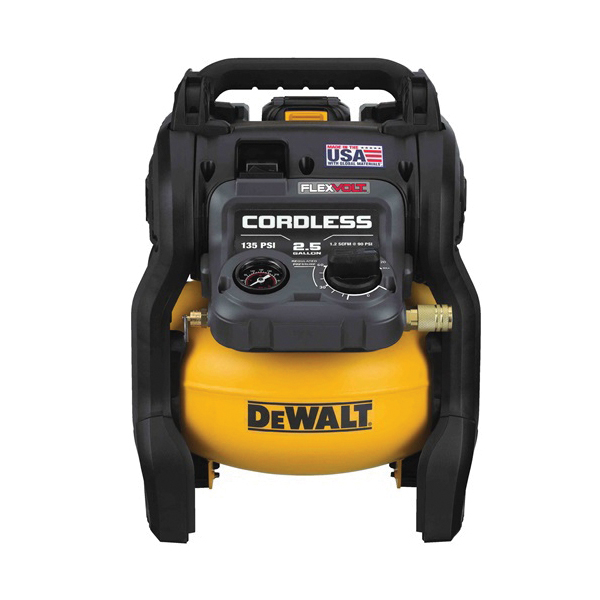 DeWALT FLEXVOLT DCC2560T1 Cordless Air Compressor Kit, 1.2 scfm at 90 psi/1.5 scfm at 40 psi Flow Rate, 0.4 hp, 135 psi Pressure, 2.5 gal