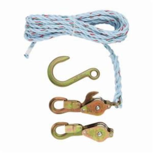 Klein® Block and Tackle, 750 lb Lifting, 3/8 in Rope Dia, 25 ft Rope, 1-7/8 in Hook Opening, Aluminum Alloy/Galvanized Steel