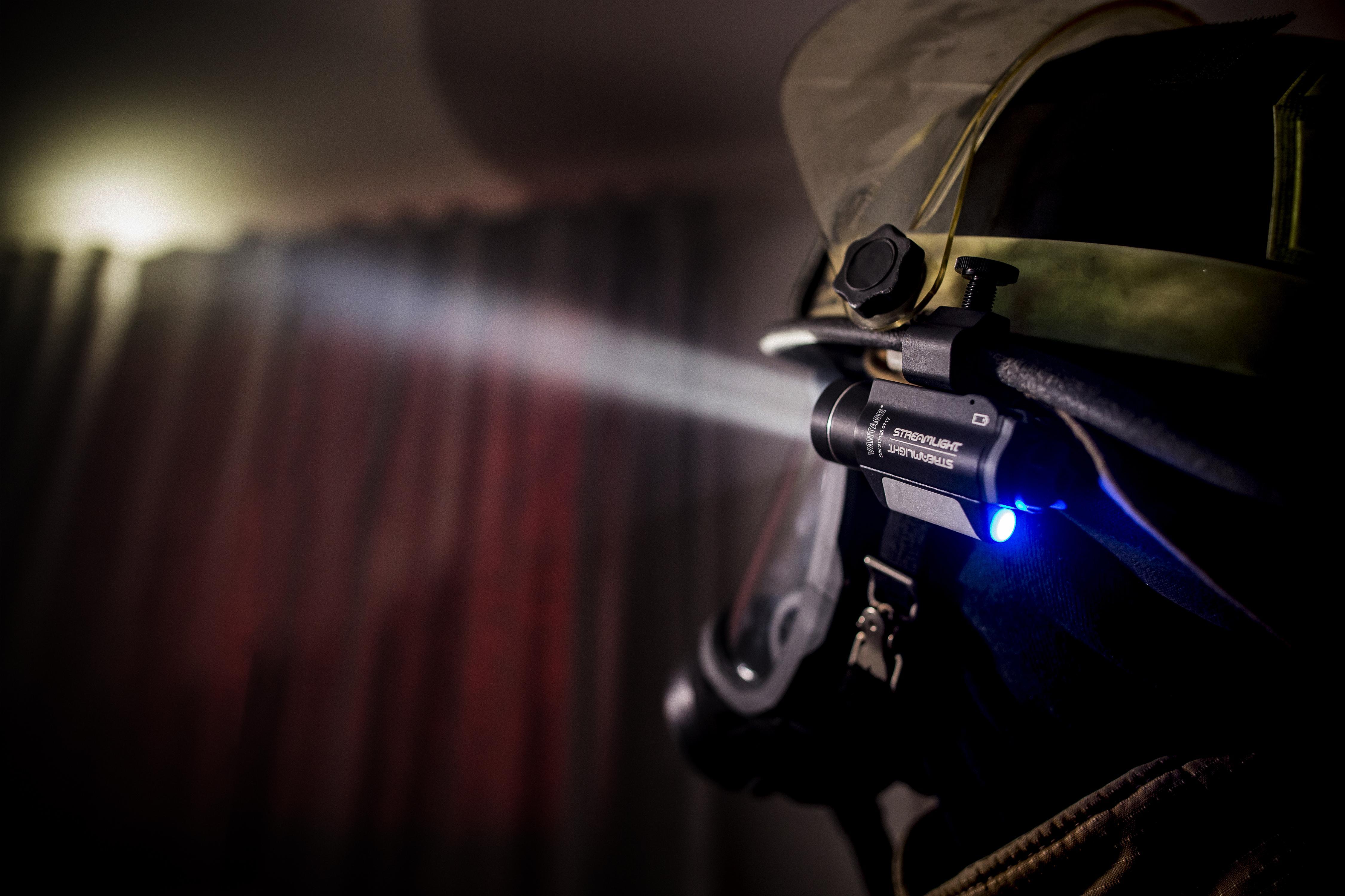 - Lightweight, compact, low profile design easily attaches/detaches above or below brim on fire helmets, industrial helmets and hard hats