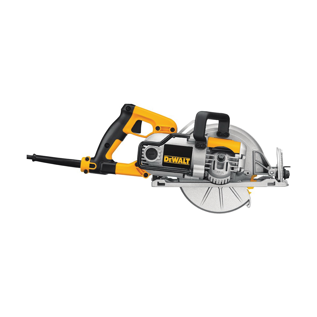 DeWALT DWS535B Lightweight Worm Drive Circular Saw, 7-1/4 in Blade, 5/8 in Arbor/Shank, 1-7/8 in at 45 deg, 2-7/16 in at 90 deg Cutting, Left Blade Side