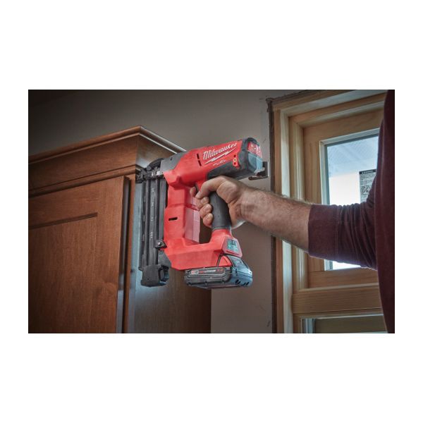 - Bare Tool/Kit:KitBattery Capacity:2 AhBattery Included:YesBattery Type:Lithium-IonCollation Angle:0 deg/StraightCollation Type:AdhesiveColor:Black/RedControl Type:AdjustableDimensions:3-13/64 in W x 11-13/64 in HFastener Size:5/8 to 2-1/8 inHandle Type:Overmold Rubber Grip, Overmolded Rubber GripHousing Material:Glass Filled NylonMagazine Capacity:110 Nails, 110 Nails NailsMagazine Loading:Side, Side LoadOverall Length:11-29/32 inPower Source:BatteryShank Size:0.0468 inTip Type:Non-MarringTrigger Type:Contact/Sequential Actuation, Sequential/Contact ActuationVoltage Rating:18 VDC
