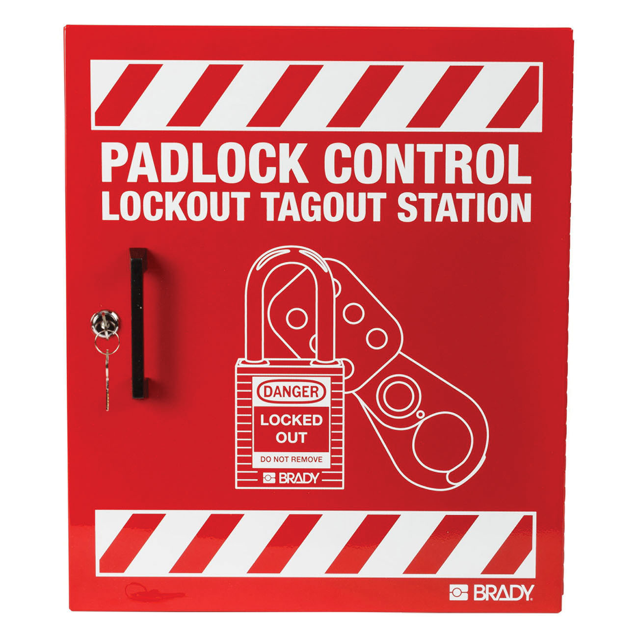 - Color:RedDepth:2 inFilled/Unfilled:UnfilledHeight:15-1/2 inLanguage:EnglishLegend:PADLOCK CONTROL CABINET LOCK OUT FOR SAFETY BEFORE YOU STARTMaterial:SteelMaximum Number of Padlocks:36Mounting Type:WallType:LargeWidth:18 in