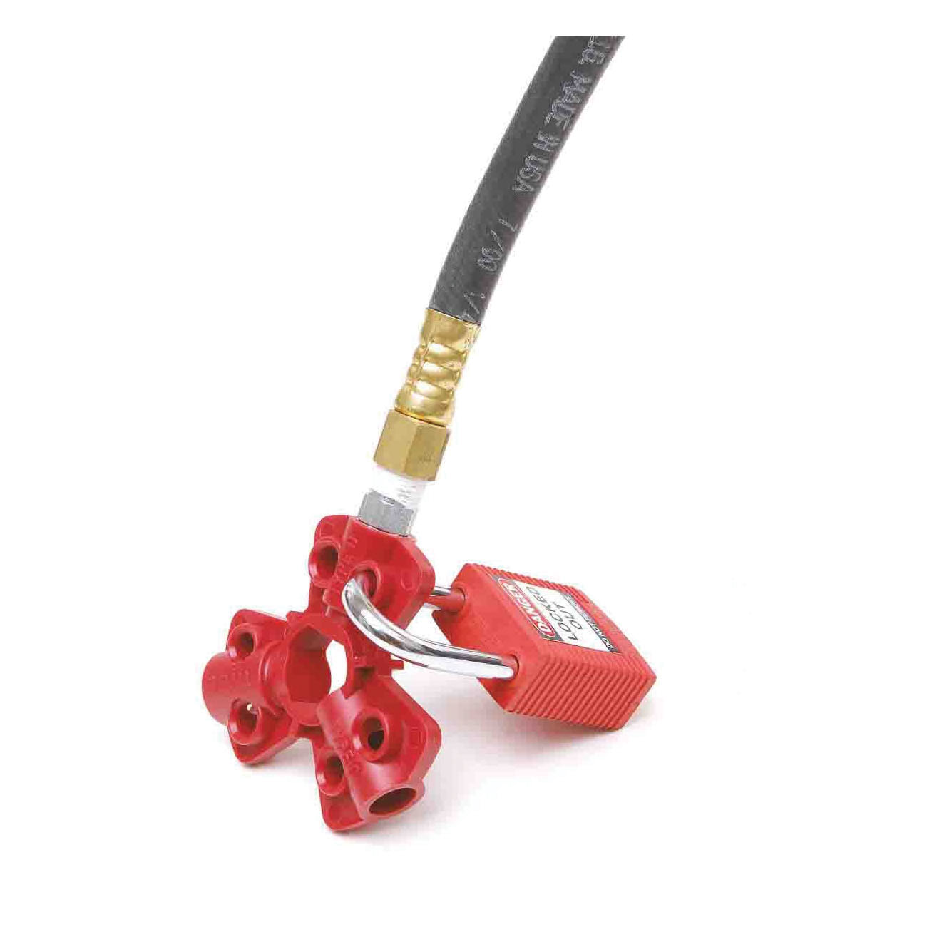 - Color:RedDimensions:0.83 in L x 2.875 in W x 2.875 in HMaterial:Fiberglass Reinforced NylonMaximum Number of Padlocks:6Padlock Shackle Maximum Diameter:0.31 inSuitable For Use With:1/4, 3/8, 1/2 in Male FittingsType:Quick-Disconnect