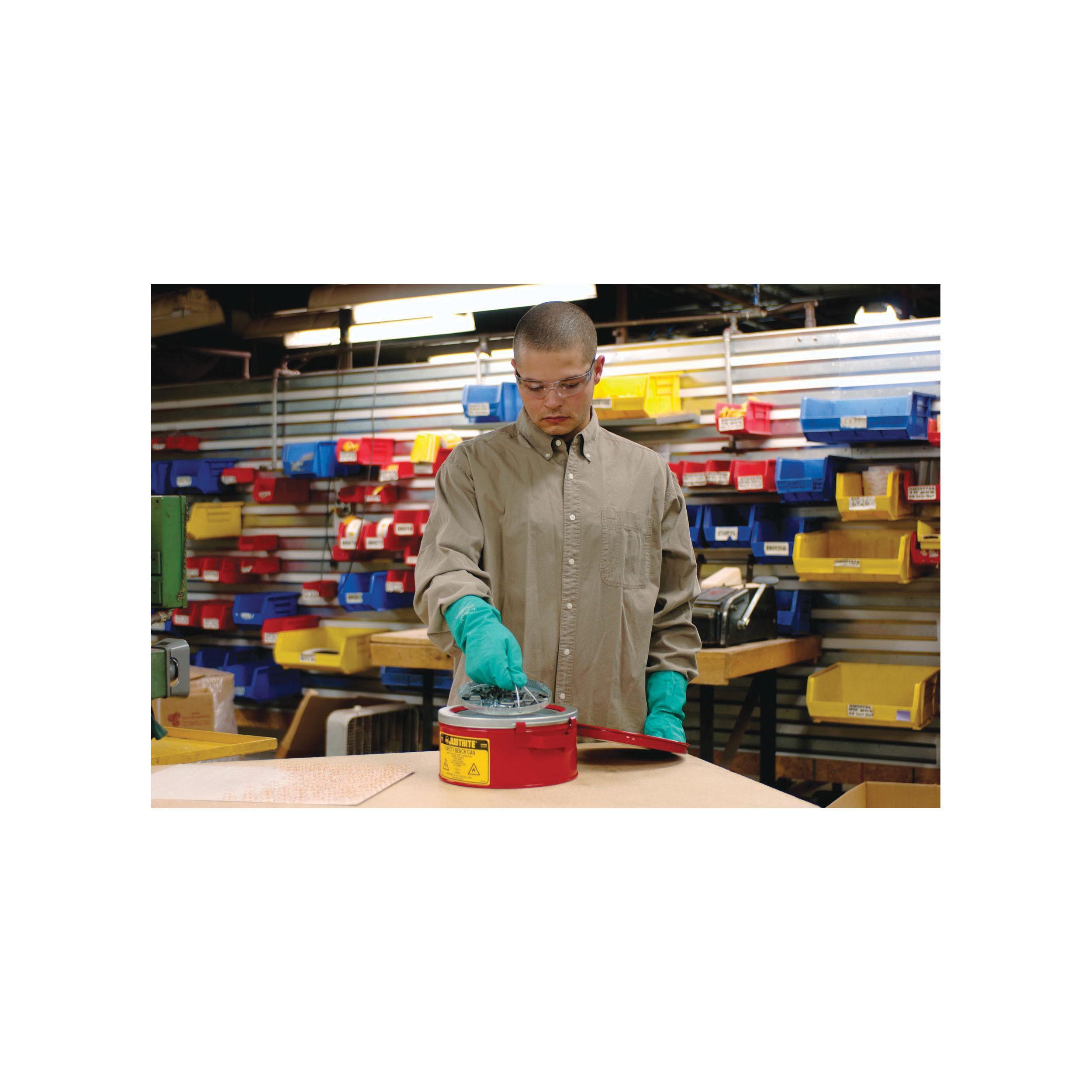 Justrite 10370 Bench Can With Basket, 1 gal Capacity, 9-3/8 in Dia x 4-1/2 in H, Galvanized Steel, Red