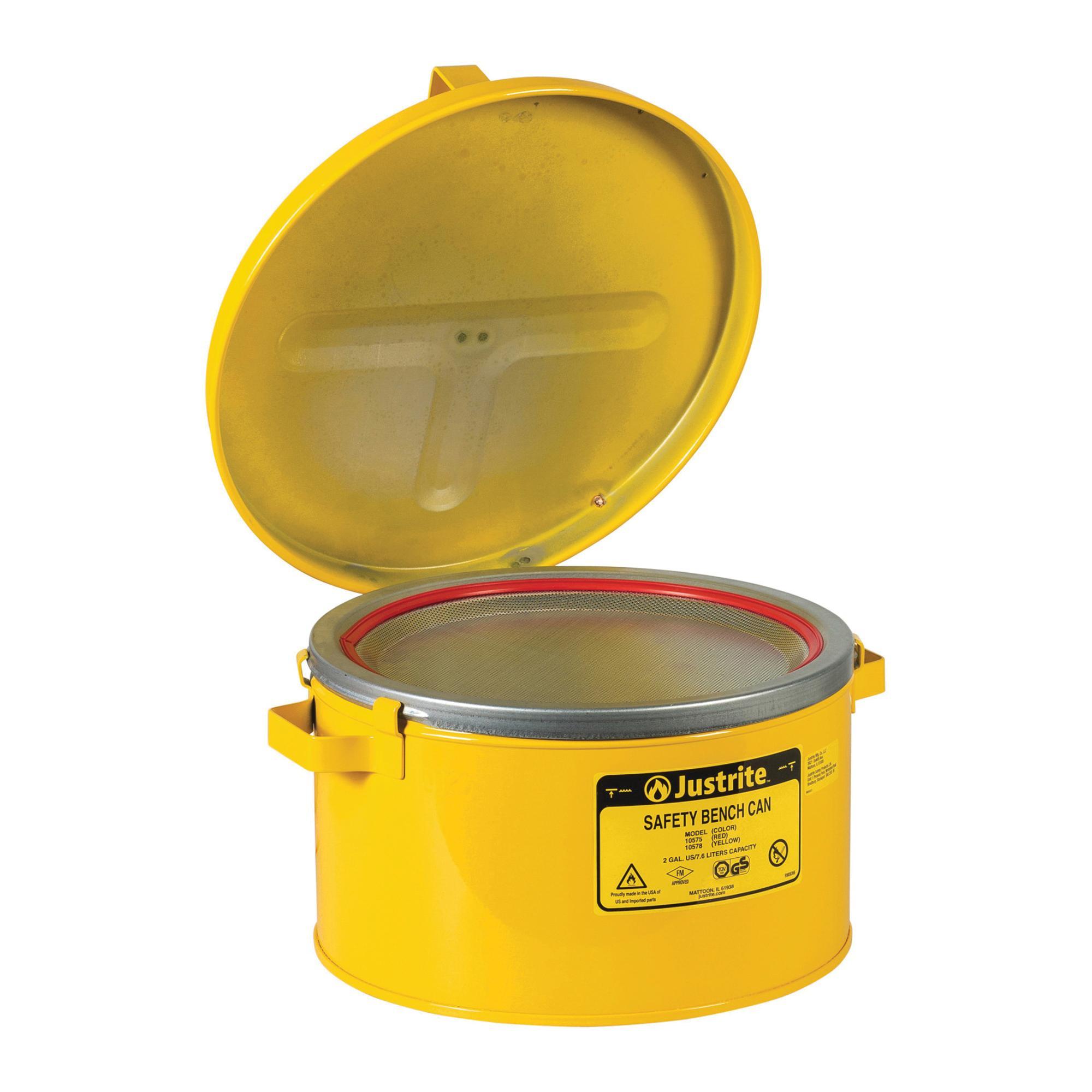 Justrite 10578 Bench Can, 2 gal Capacity, 11-1/2 in Dia x 5-7/8 in H, Steel, Yellow