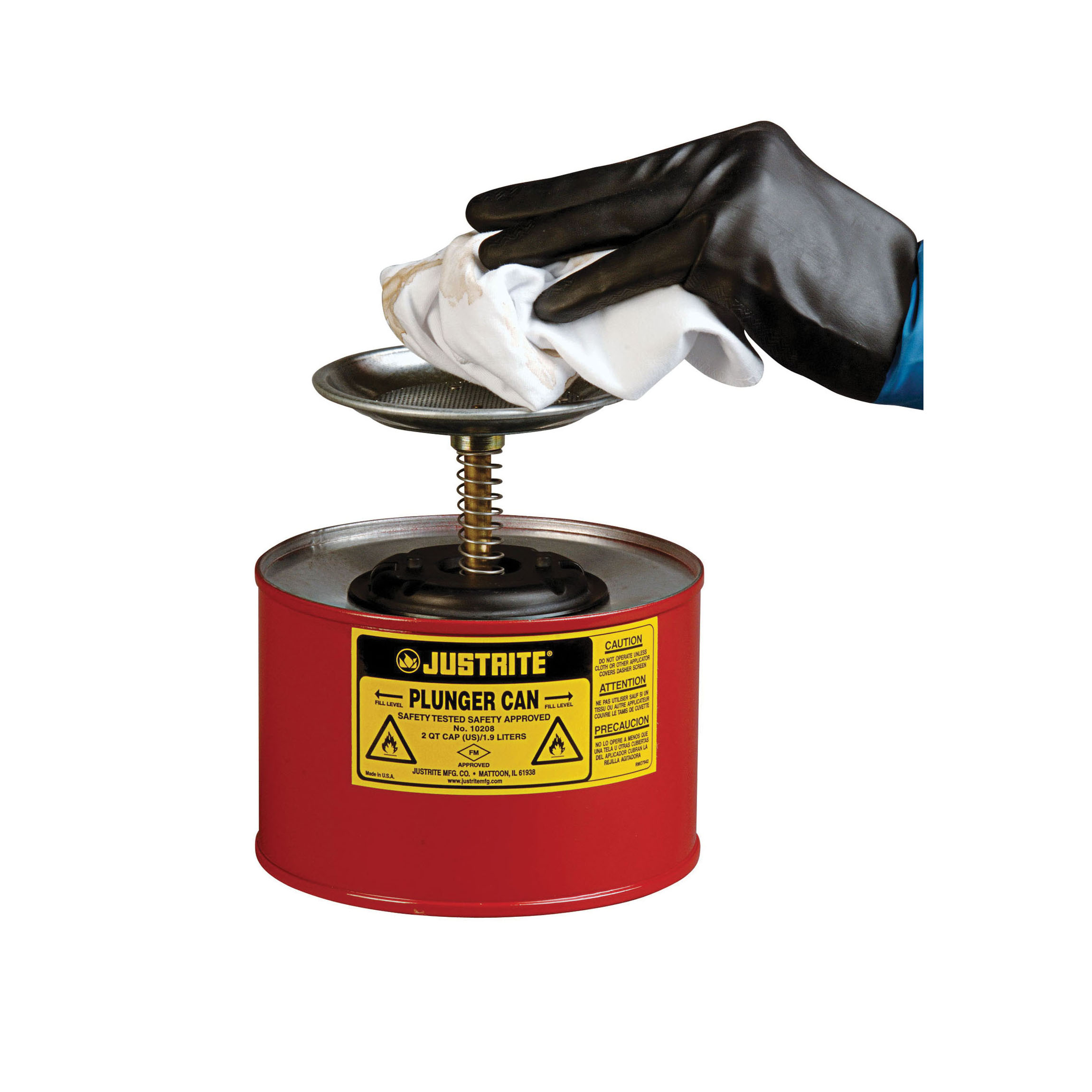 Justrite 10208 Plunger Dispensing Can, 2 qt, Steel, Red, Brass/Ryton Plunger, 5 in Dia Dasher Plate
