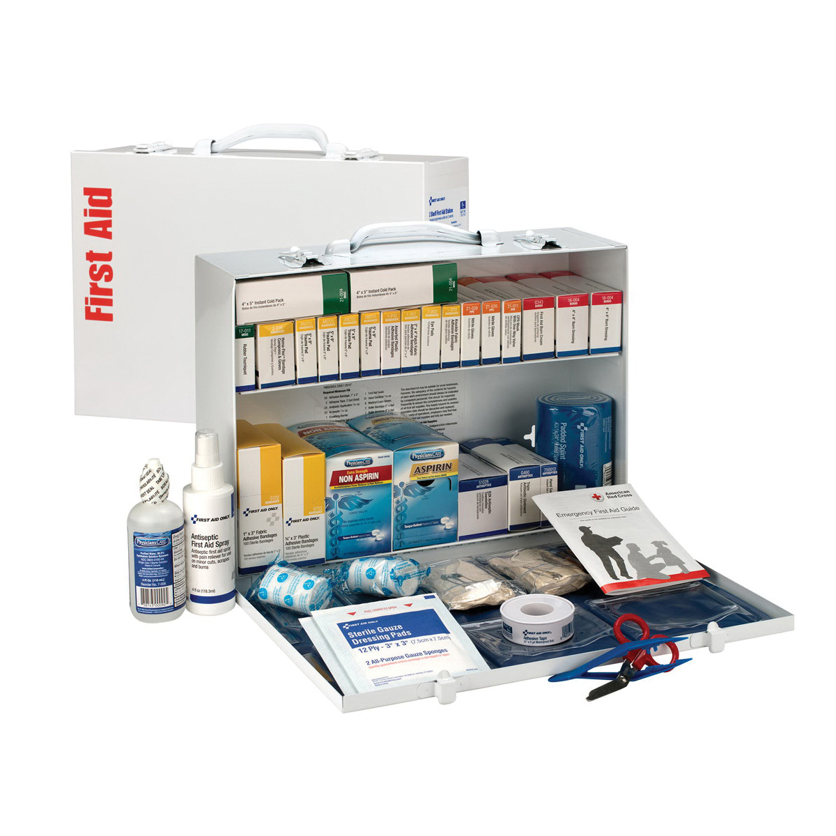 First Aid Only 90573 Portable First Aid Cabinet With Medications, Wall Mount, 446 Components, Steel Case