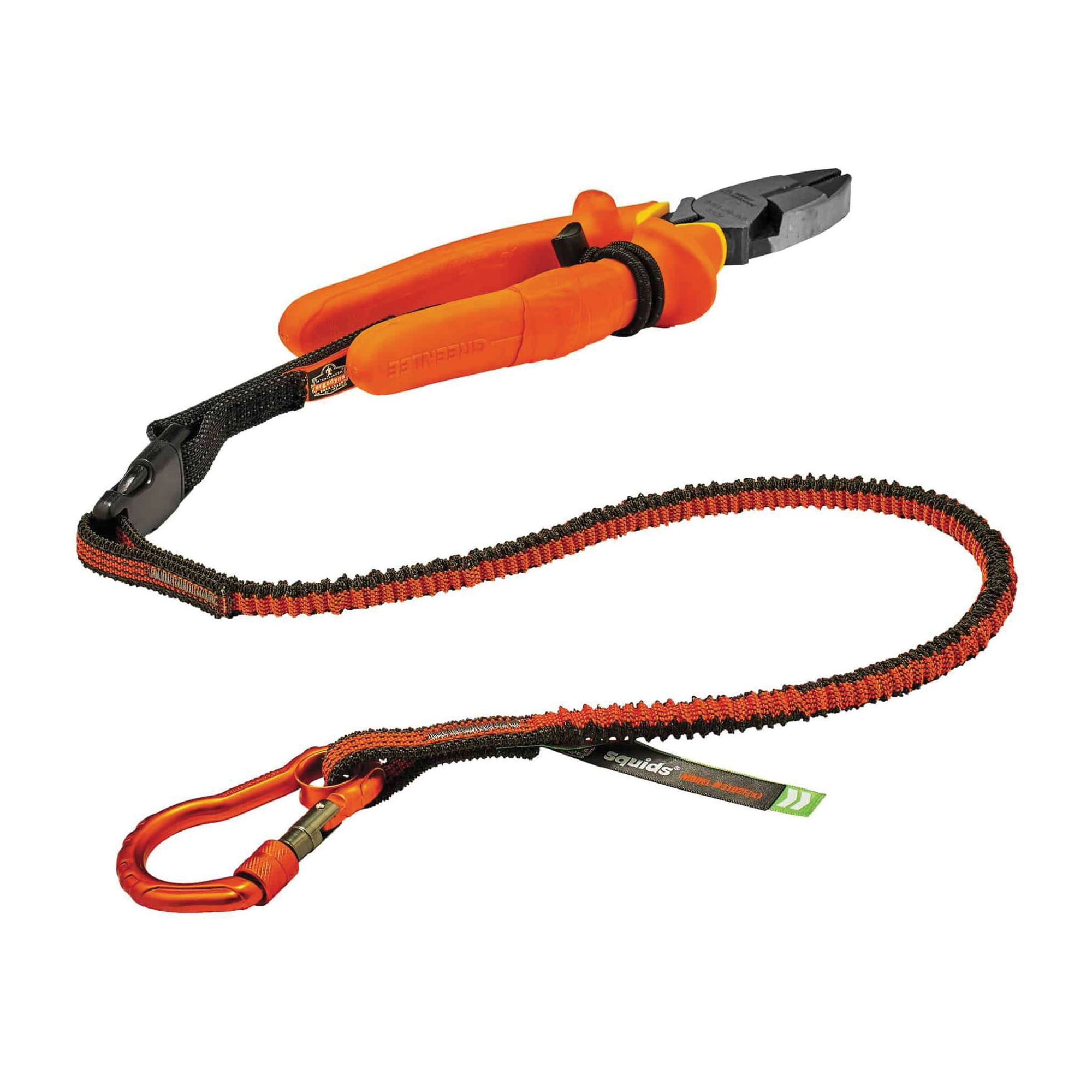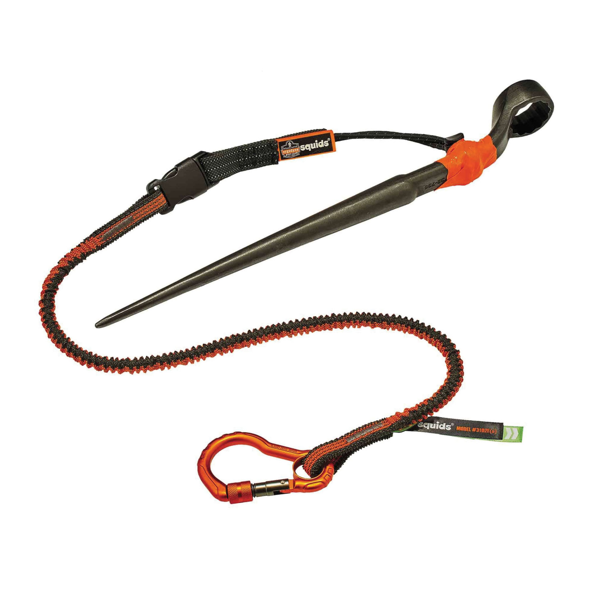 Squids 19864 3102F(x) Detachable Standard Tool Lanyard, 38 to 54 in L Extended, 5 lb Capacity, Carabiner Connection, 1680D Polyester Elastic Blended Webbing, Orange/Gray